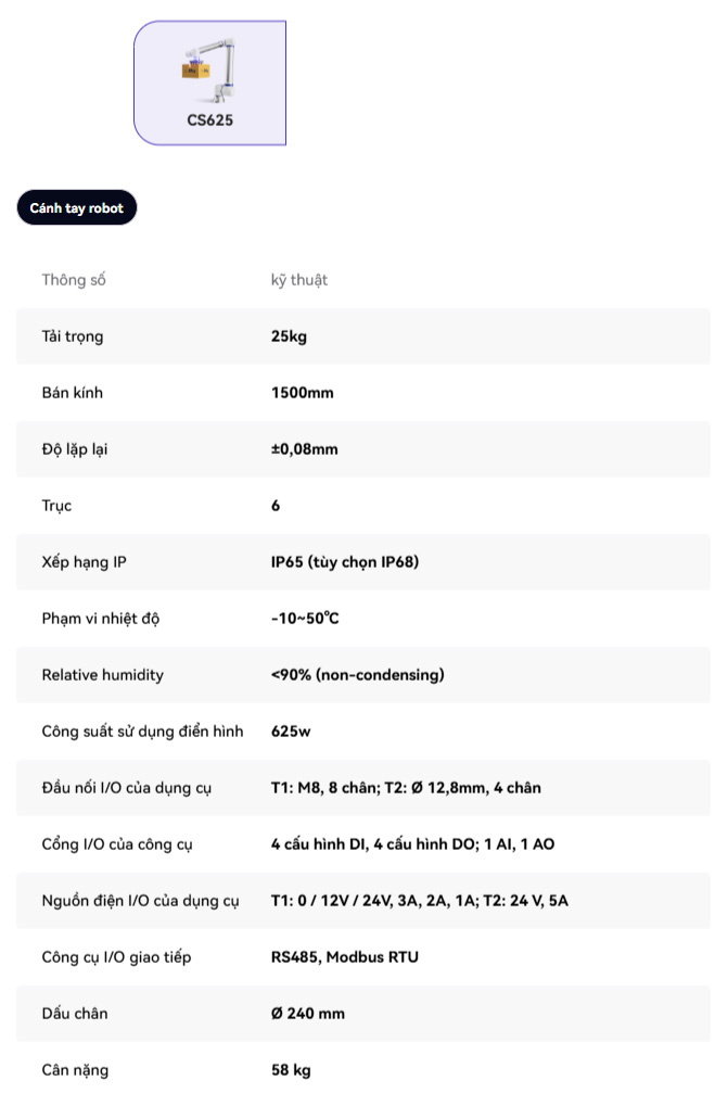 Cánh Tay Robot Công Nghiệp CS 625