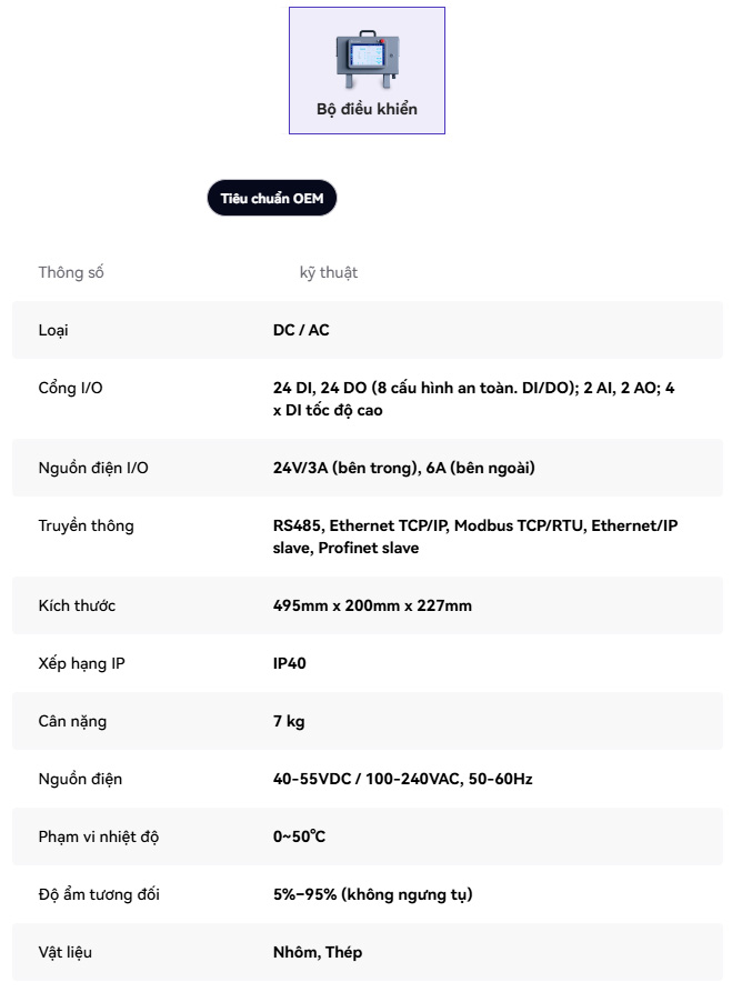 Giao tiếp thông minh: Tích hợp giao thức TCP, cho phép truyền tải dữ liệu tốc độ cao và kết nối mượt mà với mạng lưới điều khiển thông minh của nhà máy.